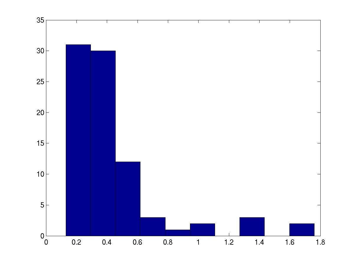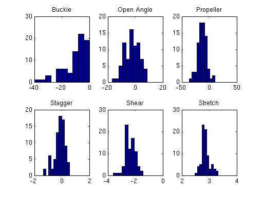 Distributions of E-value of the U:U W:W C basepair  (Das et. al, 2006)   obtained from the crystal database
