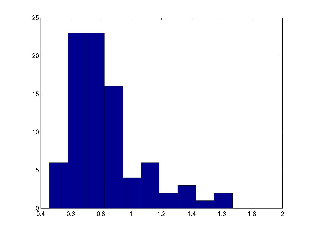Distributions of E-value of the A:A H:H T basepair (Das et. al, 2006) obtained from the crystal database