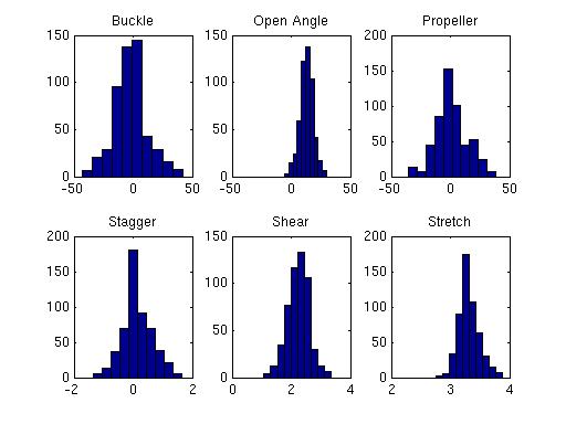 Distributions of basepair parameters (Mukherjee et. al, 2006) for the A:G H:S T basepairs obtained from non-redundant dataset of RNA crystal structures (Ray et. al, 2012)