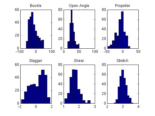 Distributions of basepair parameters (Mukherjee et. al, 2006) for the A:G s:s T basepairs obtained from non-redundant dataset of RNA crystal structures (Ray et. al, 2012)