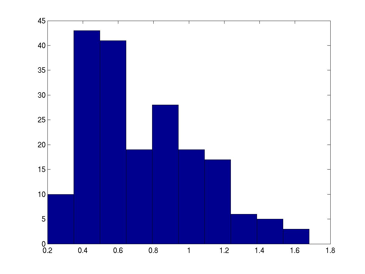 Distributions of E-value of the A:G s:s T basepair (Das et. al, 2006) obtained from the crystal database