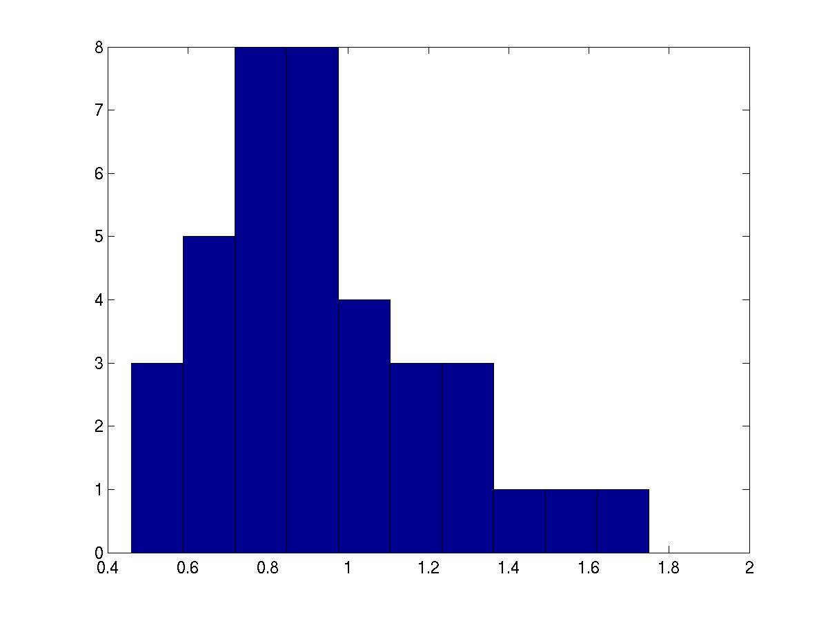 Distributions of E-value of the A:G w:s C basepair (Das et. al, 2006) obtained from the crystal database
