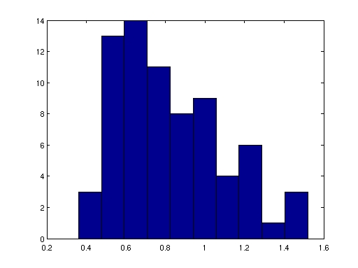 Distributions of E-value of the A:U s:s C basepair (Das et. al, 2006) obtained from the crystal database