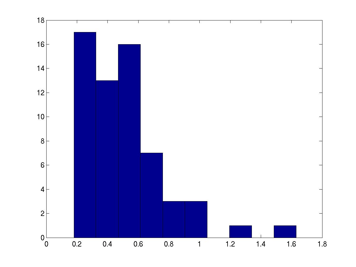 Distributions of E-value of the G:C W:W T basepair (Das et. al, 2006) obtained from the crystal database